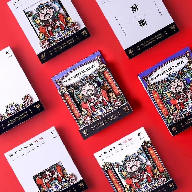 有趣之处在于中间是一个运用了纸雕工艺的财神,当一本日历撕完,一个纸雕工艺品就诞生了。