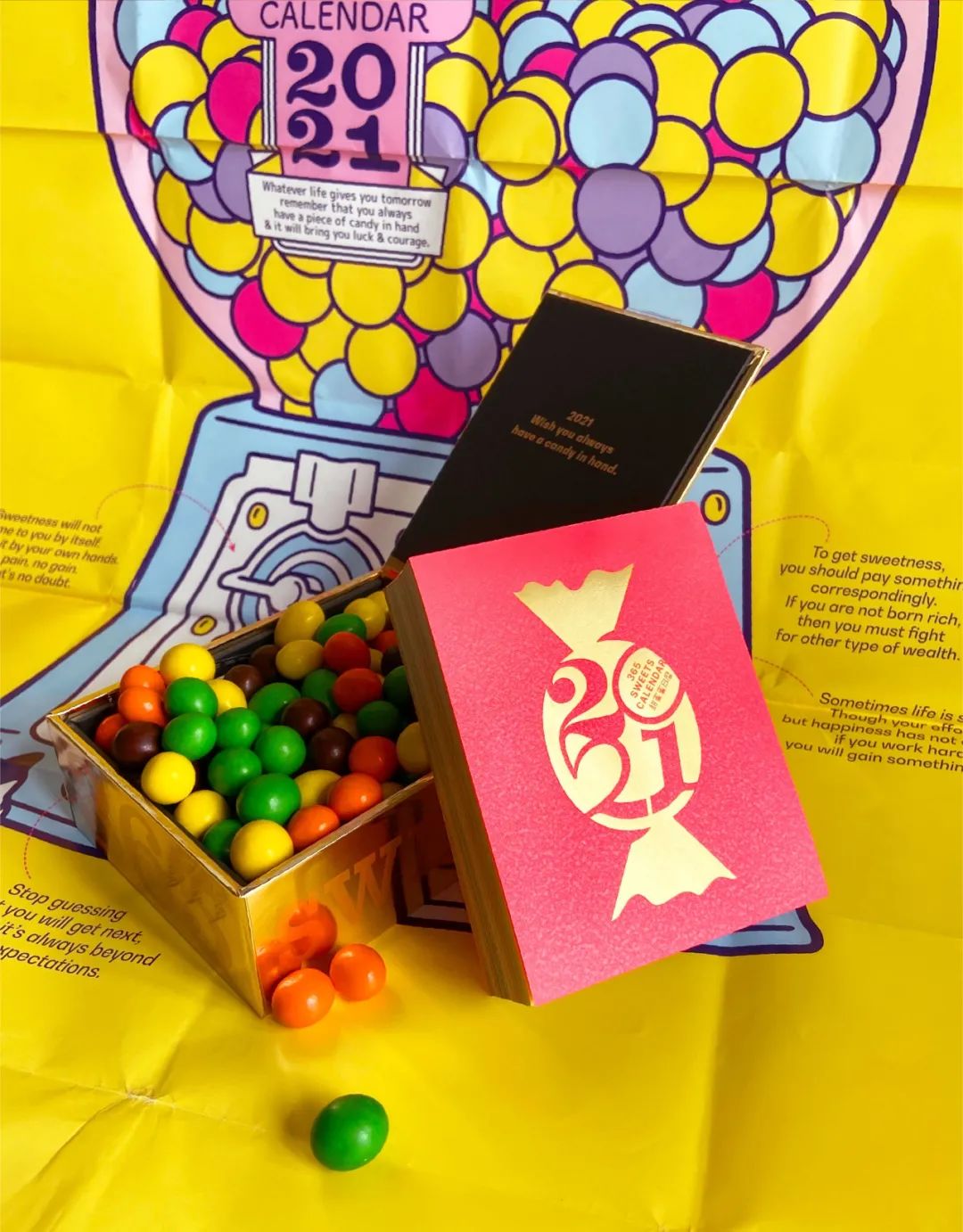 拆开这本日历,就像拆开一盒糖果,打开金闪闪的糖果纸,仿佛每一天都甜甜的。
