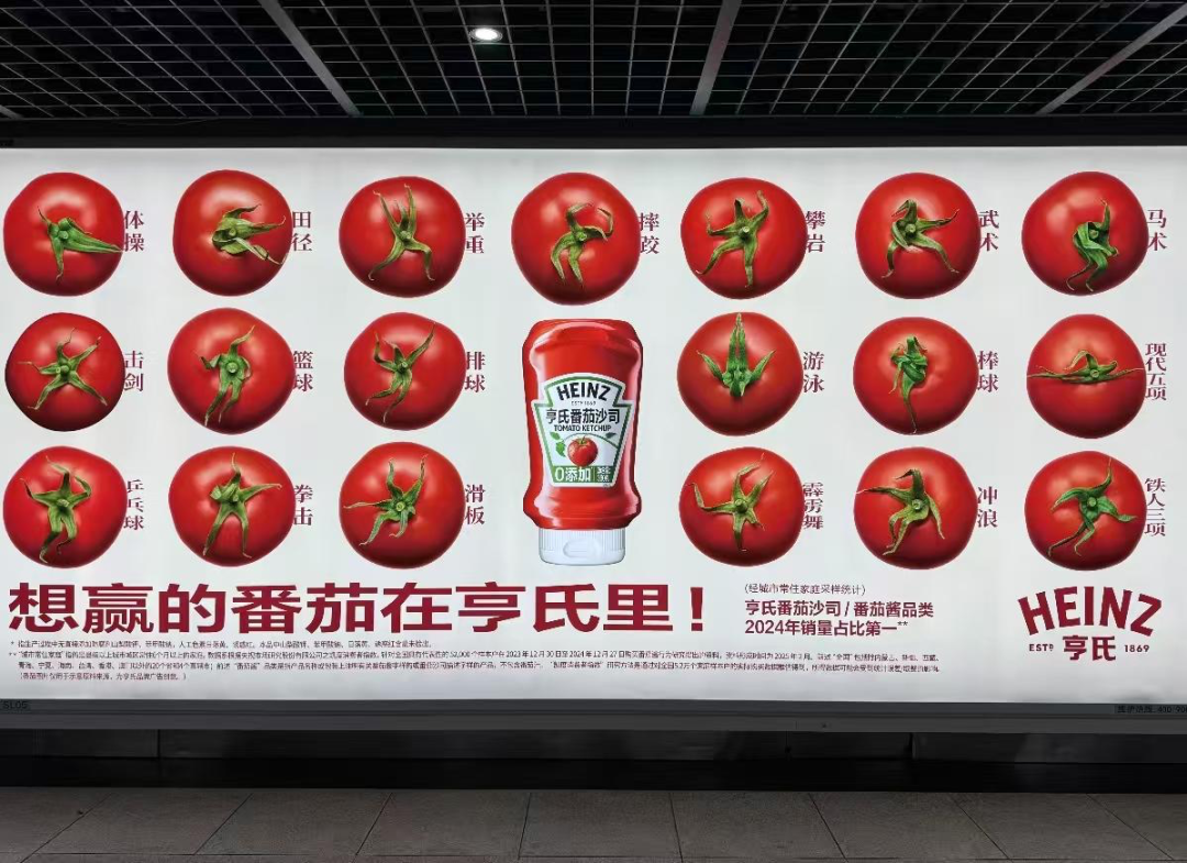 推荐理由 :文案在全运会期间上线,其中“想赢”二字精准踩中赛事“拼搏夺冠”的竞技内核,又悄悄扣住番茄“想赢”就得靠“成熟优质”的产品逻辑;而“都在亨氏里”则把品牌对番茄品质的极致追求藏在字里行间,既没脱离全运赛事的热血氛围,又顺理成章植入核心优势,隐性关联直接拉满。